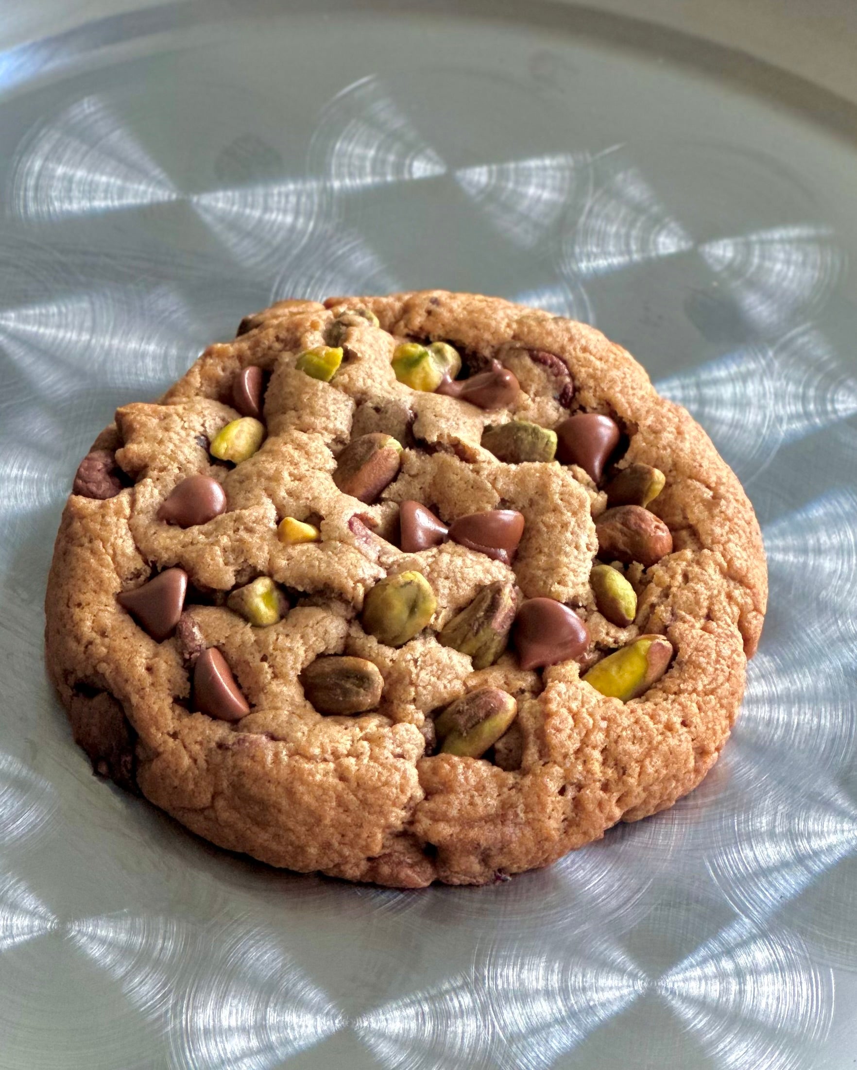 INGREDIENTS: Certified 100% Organic Unbleached Hard Red Wheat Flour, Certified 100% Organic Malted Barley Flour, Organic Corn Starch, Organic Kosher Salt, Organic Vegan Milk Chocolate Chips, Organic Cane Sugar, Organic Coconut Sugar, Organic Pure Vanilla Extract, Baking Powder, Baking Soda, Vegan Butter, Organic Oat milk Organic Pistachios, Organic Egg Replacer.
